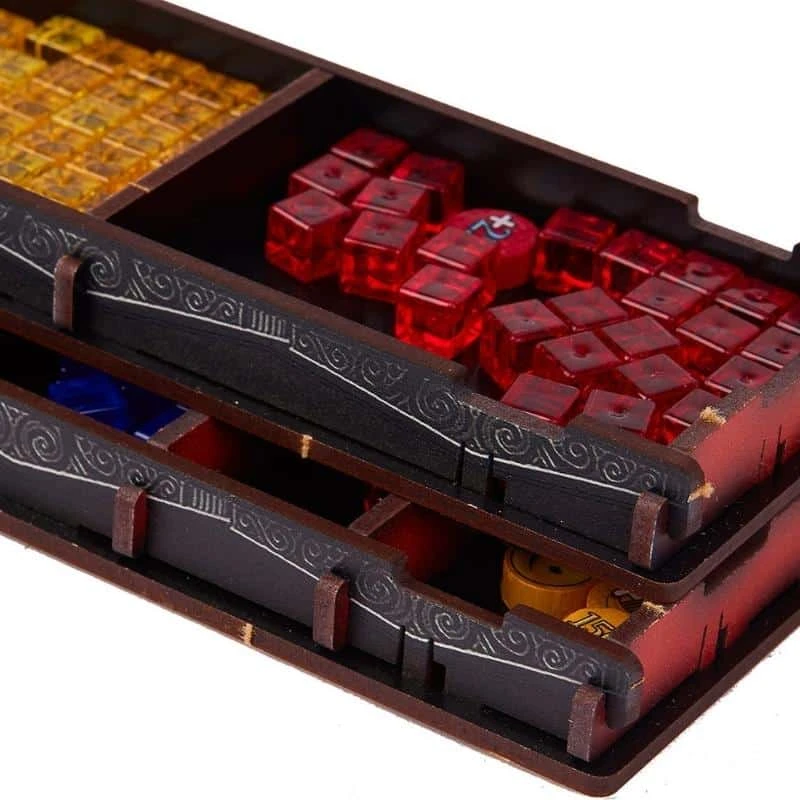NL: Ruim je bordspel overzichtelijk op én zet spellen in een mum van tijd klaar met de prachtige UV-print houten inserts van E-raptor! Alle onderdelen hebben hun eigen plek, zodat je nooit meer iets kwijt bent en de bakjes met kleine onderdelen zet je gewoon op tafel als algemene voorraad!