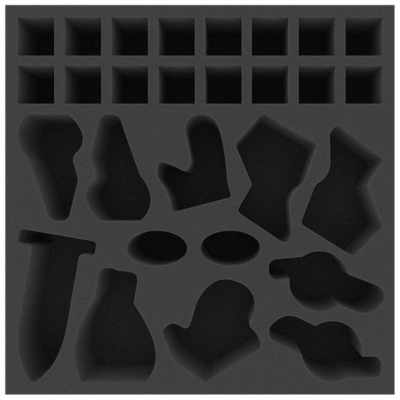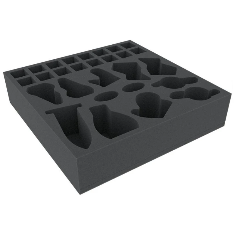 NL: Ruim je bordspel overzichtelijk op en bescherm je miniaturen met de foam inserts van Feldherr! Alle onderdelen hebben hun eigen plek, zodat je nooit meer iets kwijt bent en als je je miniaturen hebt geschilderd, weet je zeker dat de verf niet zal beschadigen tijdens het transport. Alle foam inserts worden gemaakt van een zeer goede kwaliteit schuim.