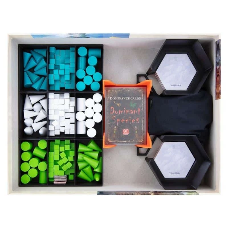 To help you survive, we have prepared a suitable emergency kit for the “Dominant Species – Second Edition” core game. This ensures that you always have an eye on your resources, the game material is clearly arranged, and there is no chaos in the board game box. This way, you survive even the darkest of times, and soon you catapult your race to the top of the food chain.