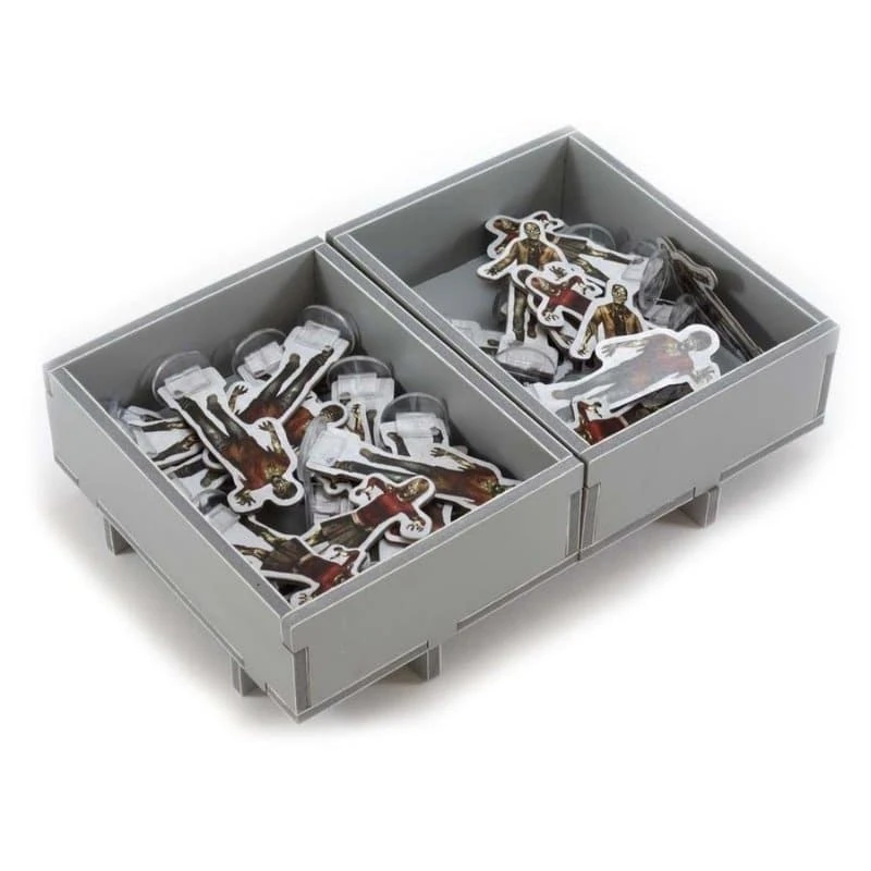 When the insert is used for The Long Night®, the thick location cards sit underneath (or on top should you wish) of the zombie and survivor trays. Note: when used for The Long Night® the zombie and other standees need to have the majority of their bases removed.
