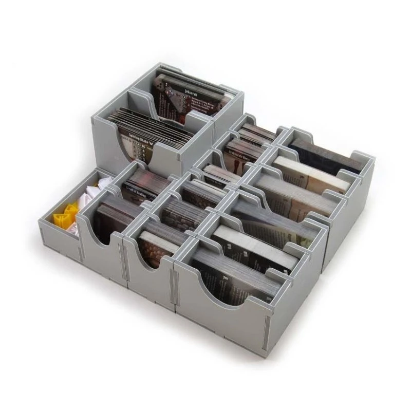 NL: Ruim je bordspel overzichtelijk op én zet spellen in een mum van tijd klaar met de inserts van Folded Space! Alle onderdelen hebben hun eigen plek, zodat je nooit meer iets kwijt bent en de bakjes met kleine onderdelen zet je gewoon op tafel als algemene voorraad! De inserts zijn gemaakt van evacore en je kunt ze zelf gemakkelijk in elkaar zetten met PVA lijm. Benieuwd hoe je dat doet? De handleiding vind je hier.
