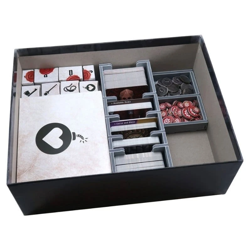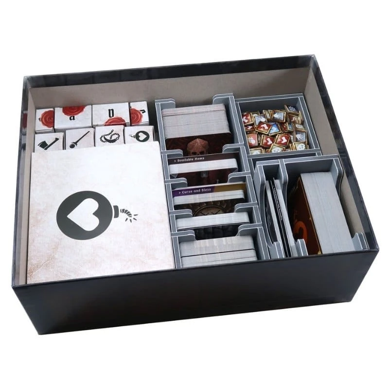 NL: Ruim je bordspel overzichtelijk op én zet spellen in een mum van tijd klaar met de inserts van Folded Space! Alle onderdelen hebben hun eigen plek, zodat je nooit meer iets kwijt bent en de bakjes met kleine onderdelen zet je gewoon op tafel als algemene voorraad! De inserts zijn gemaakt van evacore en je kunt ze zelf gemakkelijk in elkaar zetten met PVA lijm. Benieuwd hoe je dat doet? De handleiding vind je hier.
