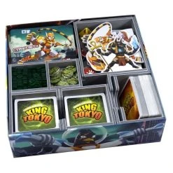 Insert compatible with King of Tokyo®, including the Power Up!® and Halloween® expansions, as well as the King Kong®, Cthulhu®, Anubis®, and Cybertooth® Monster Packs®. The design provides both efficient storage and improved game play. Many of the trays can be utilised during the game, and they greatly aid set-up and clear-away times. The insert is separately compatible with King of New York®, again including the Power Up!® and Halloween® expansions, as well as the Monster Packs® listed above. See below for more details.