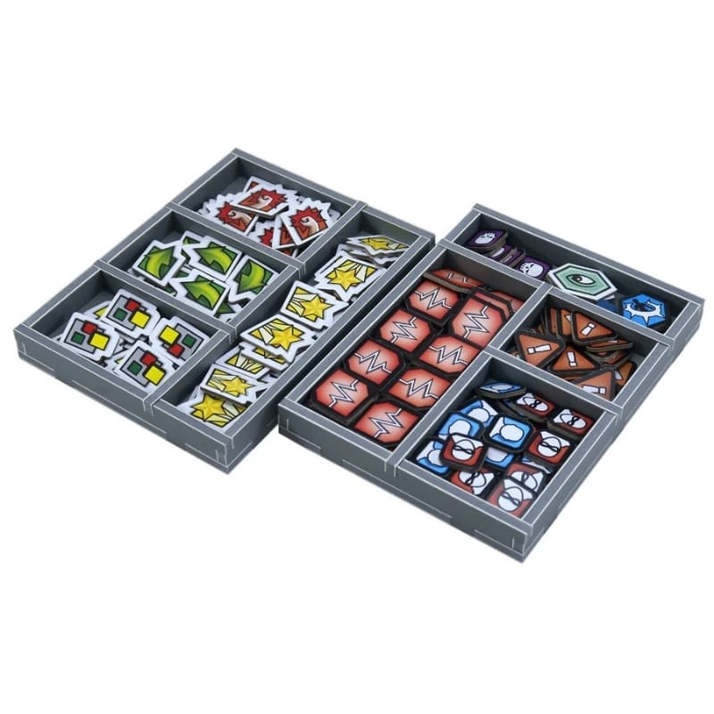 NL: Ruim je bordspel overzichtelijk op én zet spellen in een mum van tijd klaar met de inserts van Folded Space! Alle onderdelen hebben hun eigen plek, zodat je nooit meer iets kwijt bent en de bakjes met kleine onderdelen zet je gewoon op tafel als algemene voorraad! De inserts zijn gemaakt van evacore en je kunt ze zelf gemakkelijk in elkaar zetten met PVA lijm. Benieuwd hoe je dat doet? Benieuwd hoe je dat doet? De handleiding vind je hier.