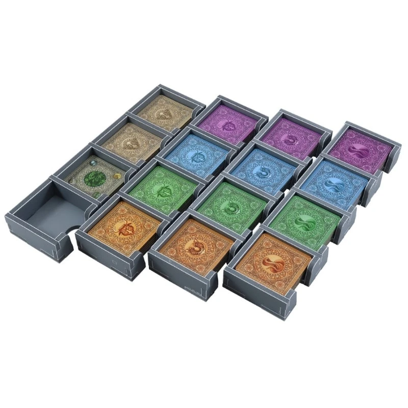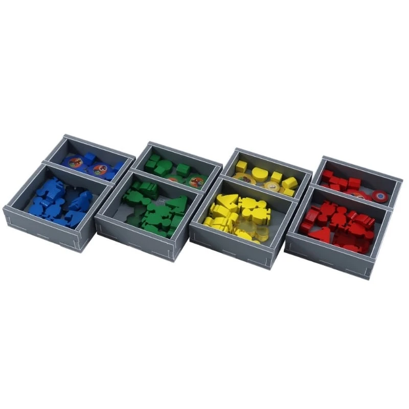 The insert includes trays for storing and organising all of the game components. Each player has their own player tray for their game pieces.