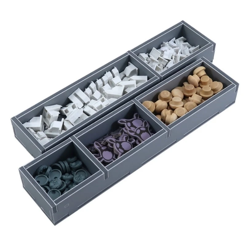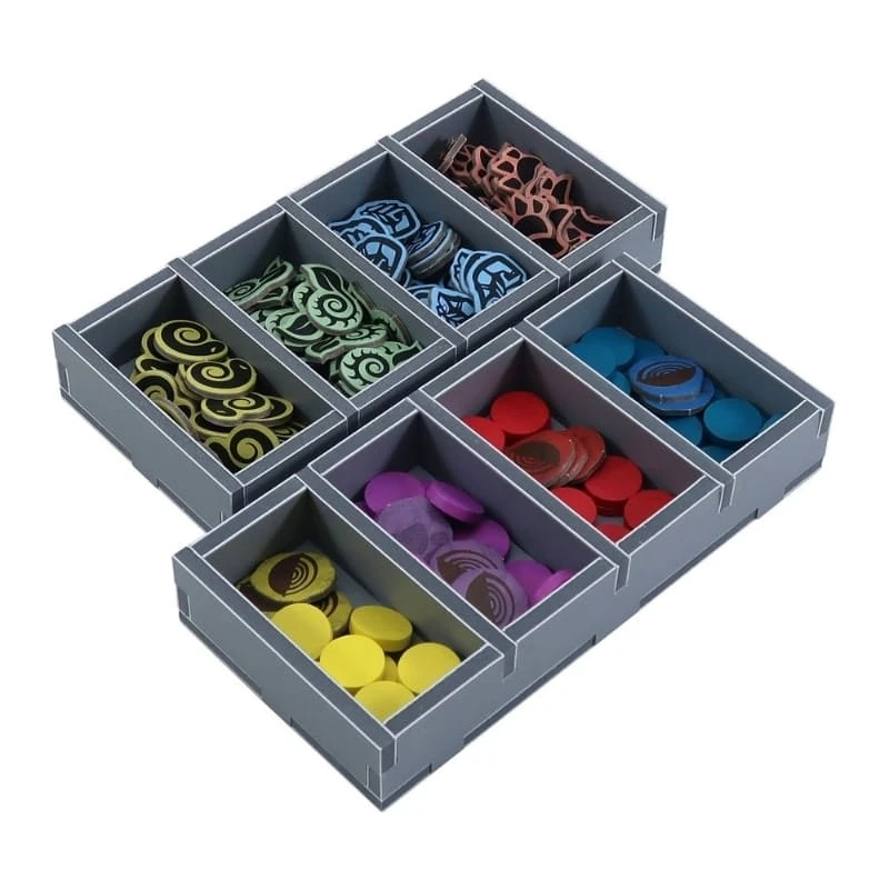 NL: Ruim je bordspel overzichtelijk op én zet spellen in een mum van tijd klaar met de inserts van Folded Space! Alle onderdelen hebben hun eigen plek, zodat je nooit meer iets kwijt bent en de bakjes met kleine onderdelen zet je gewoon op tafel als algemene voorraad! De inserts zijn gemaakt van evacore en je kunt ze zelf gemakkelijk in elkaar zetten met PVA lijm. Benieuwd hoe je dat doet? De handleiding vind je hier.
