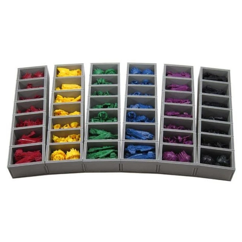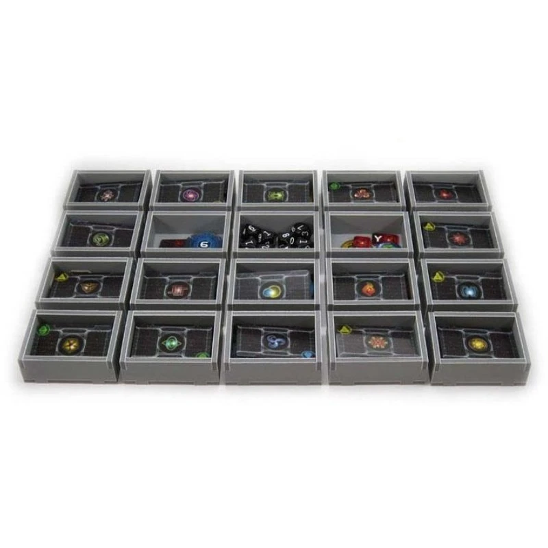 NL: Ruim je bordspel overzichtelijk op én zet spellen in een mum van tijd klaar met de inserts van Folded Space! Alle onderdelen hebben hun eigen plek, zodat je nooit meer iets kwijt bent en de bakjes met kleine onderdelen zet je gewoon op tafel als algemene voorraad! De inserts zijn gemaakt van evacore en je kunt ze zelf gemakkelijk in elkaar zetten met PVA lijm. Benieuwd hoe je dat doet? De handleiding vind je hier.