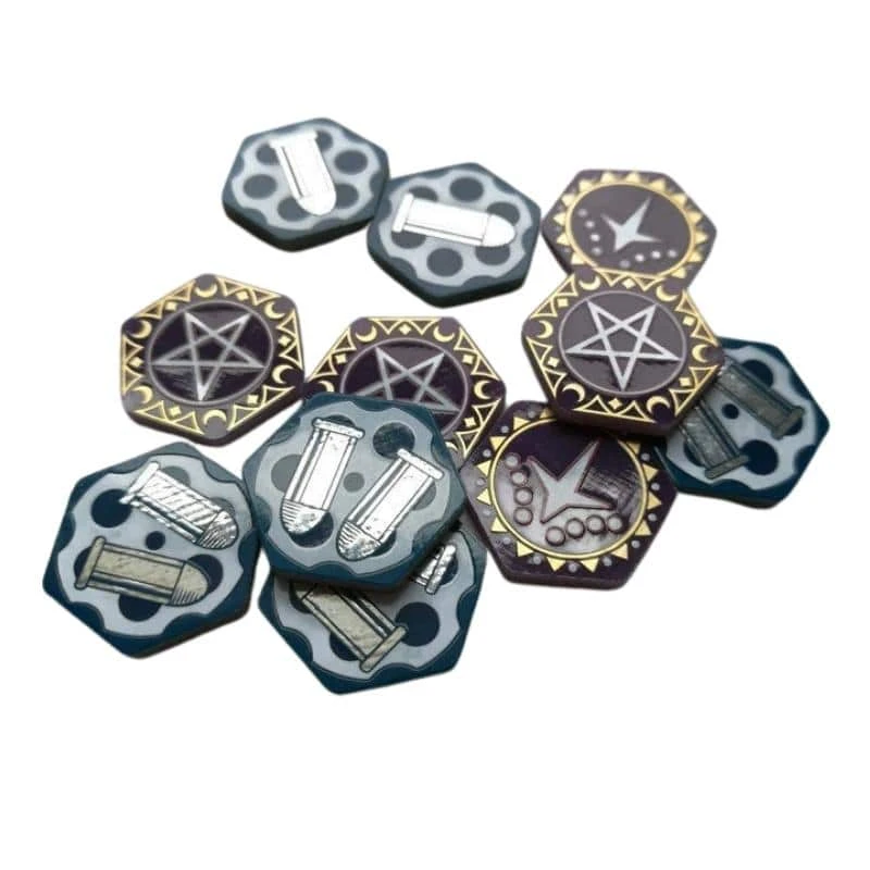Deze speciale munitiefiches zijn voorzien van een revolvercilinder en kogels, en heeft een 1 en een 2 kant. Ideaal om je geweer mee te laden!