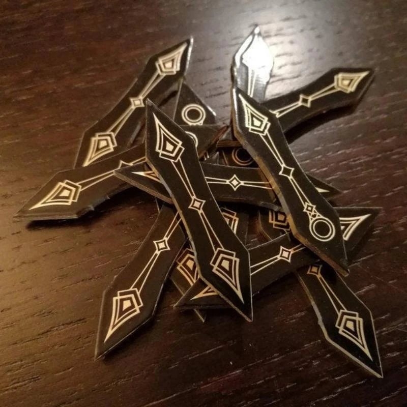 Houd bij welke locaties verbonden zijn tijdens het spelen van Arkham Horror The Card Game. Deze markeringen zijn klein en geweldig om ruimte te besparen wanneer het speelgebied vol raakt met locaties en monsters. Ze zijn dubbelzijdig.