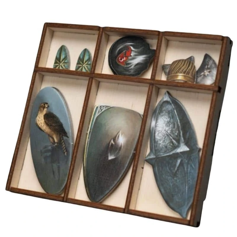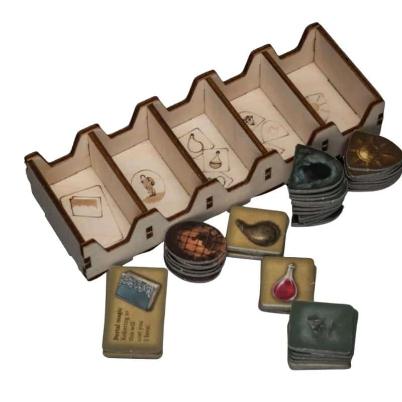 ENG: At the heart of Legends of Andor is its unique narrative, the linked scenarios of which tell an overarching story as the players successfully complete objectives. Why exhaust yourself with the lengthy set up and pack away, when you can get your hands on this superb organizer?! Every token, every card, every figure and article has their own storage, and you can store your set in the box of the base game vertically and without a lid lift.