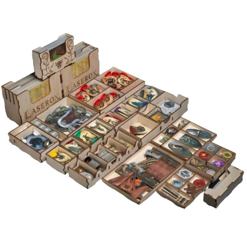 NL: Ruim je bordspel overzichtelijk op én zet spellen in een mum van tijd klaar met de prachtige inserts van Laserox! Alle onderdelen hebben hun eigen plek, zodat je nooit meer iets kwijt bent en de bakjes met kleine onderdelen zet je gewoon op tafel als algemene voorraad!