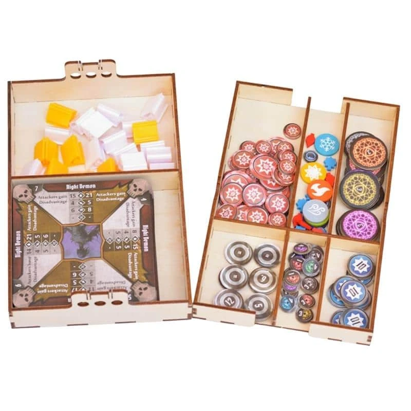 NL: Ruim je bordspel overzichtelijk op én zet spellen in een mum van tijd klaar met de prachtige inserts van Laserox! Alle onderdelen hebben hun eigen plek, zodat je nooit meer iets kwijt bent en de bakjes met kleine onderdelen zet je gewoon op tafel als algemene voorraad!