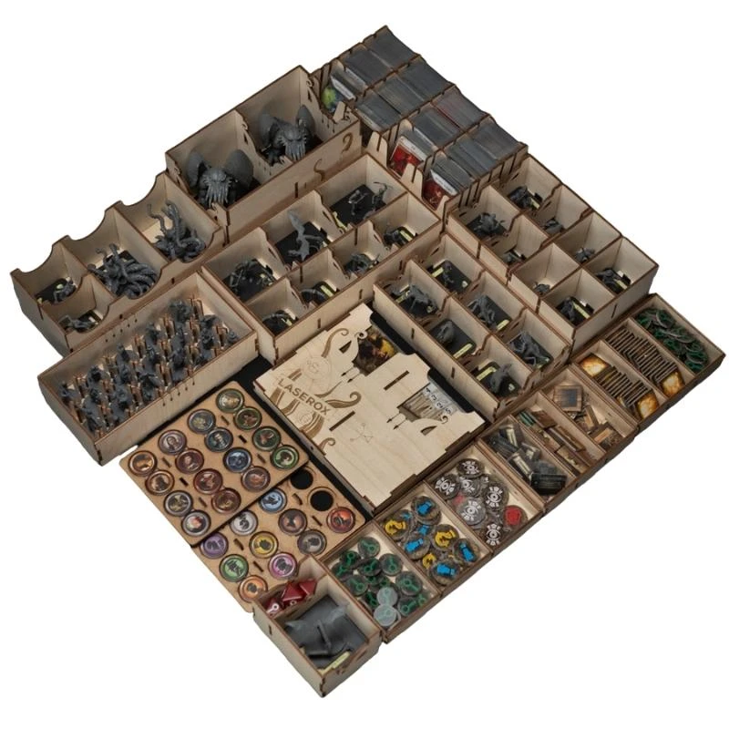 NL: Ruim je bordspel overzichtelijk op én zet spellen in een mum van tijd klaar met de prachtige inserts van Laserox! Alle onderdelen hebben hun eigen plek, zodat je nooit meer iets kwijt bent en de bakjes met kleine onderdelen zet je gewoon op tafel als algemene voorraad!