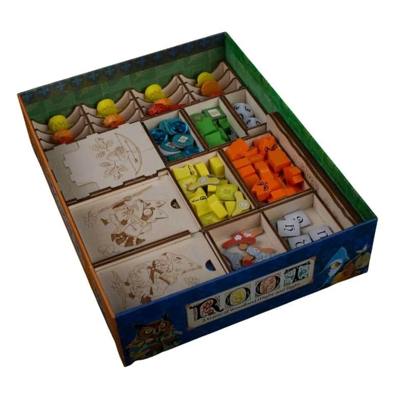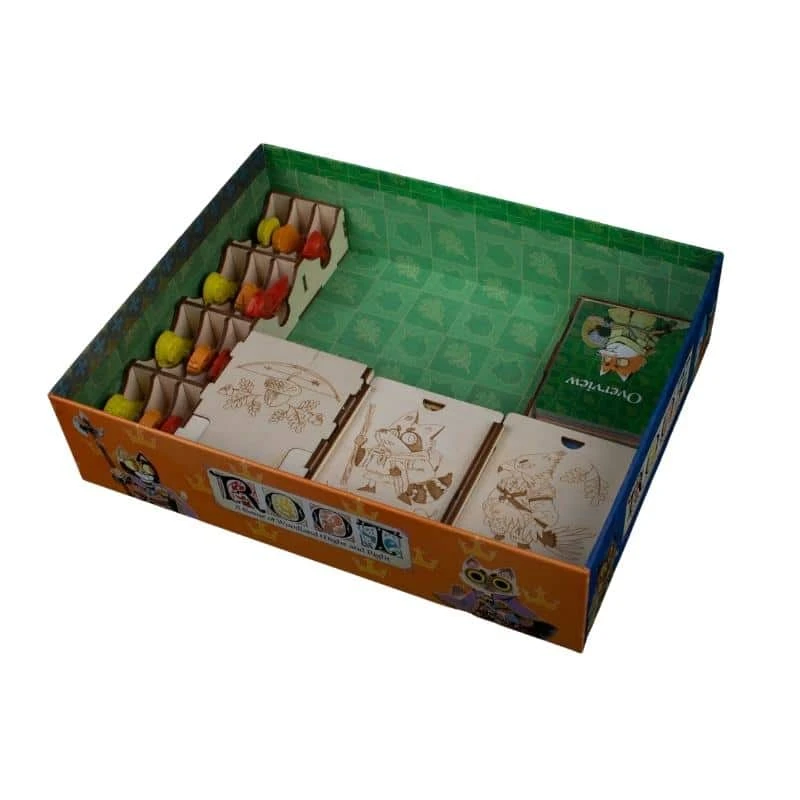 ENG: Decide the fate of the forest as woodland factions fight for contrasting goals. But you can only win if you have set your base and have everything organized at home. This organizer was designed to hold the Root base game and Root: The Riverfolk Expansion.