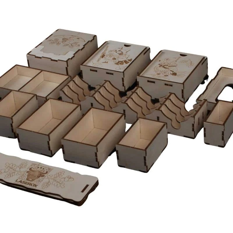 NL: Ruim je bordspel overzichtelijk op én zet spellen in een mum van tijd klaar met de prachtige inserts van Laserox! Alle onderdelen hebben hun eigen plek, zodat je nooit meer iets kwijt bent en de bakjes met kleine onderdelen zet je gewoon op tafel als algemene voorraad!
