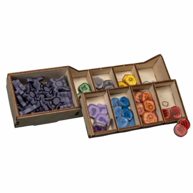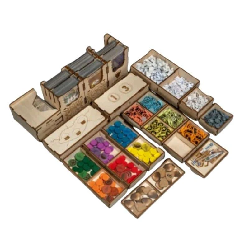 NL: Ruim je bordspel overzichtelijk op én zet spellen in een mum van tijd klaar met de prachtige inserts van Laserox! Alle onderdelen hebben hun eigen plek, zodat je nooit meer iets kwijt bent en de bakjes met kleine onderdelen zet je gewoon op tafel als algemene voorraad!