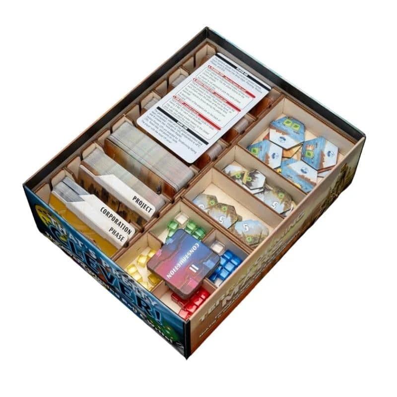 A successful terraformer needs an organized toolbox, so we designed our Ares Organizer to assist you in your missions. The natural, wooden components and the thematic engravings will not only level up your tabletop view, but also upgrade your gamebox and decrease set up and clear up time. For general assembly tips click here.