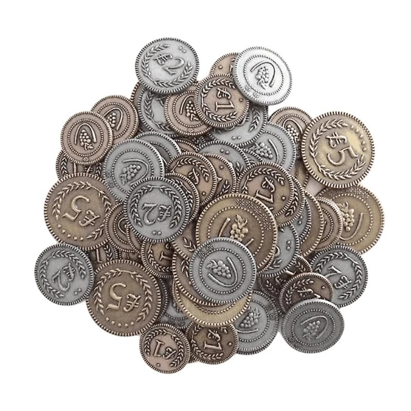 In deze set vind je 80 metalen munten, perfect voor Viticulture van Stonemaier Games, maar je kunt de munten ook voor andere spellen gebruiken. Een prachtige upgrade voor je spellenverzameling!