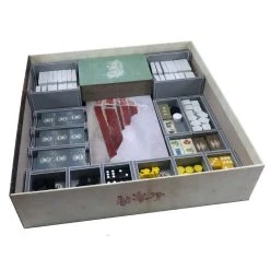 Het kan verticaal of horizontaal worden opgeborgen, heeft ruimte voor gesleevde kaarten, de grote meeples en het heeft zelfs ruimte voor een extra Bag’o’Fish, voor het geval je besluit je voorraad te verdubbelen.